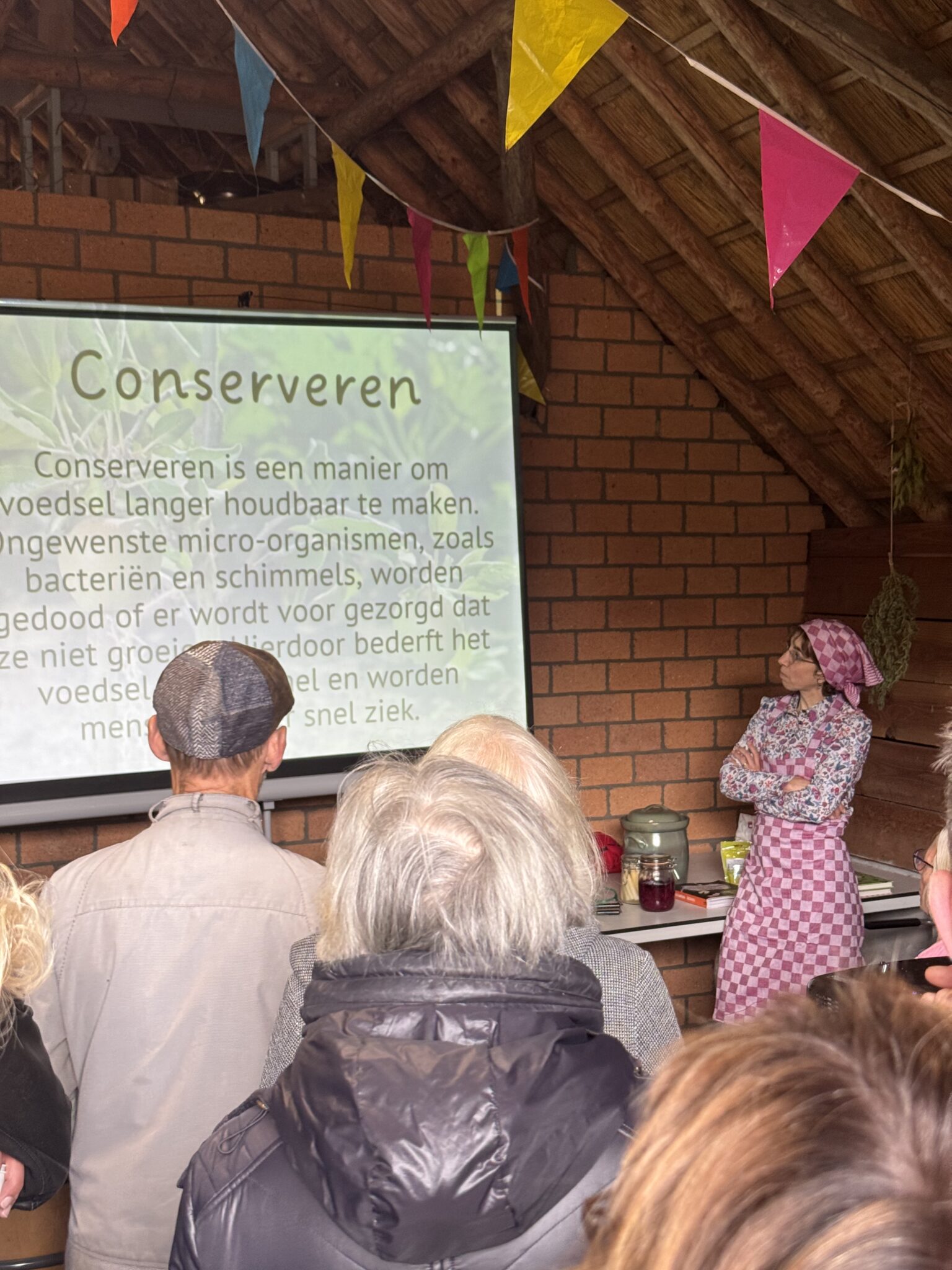 Tijdens het oogstfeest gaven Antoinette van Bree en Henriëtte Blok een inspirerende en leerzame lezing over het bewaren van oogst en de verschillende verwerkingsmethoden van groente en fruit.